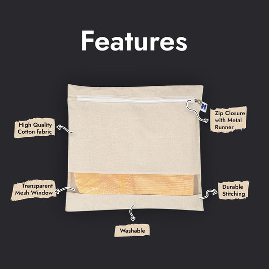 Cotton Saree Cover with Durable Mesh Window & Zipper Closure
