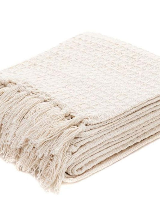 CozyWeave™ Oatmilk WaffleKnit Tassel Throw Blanket